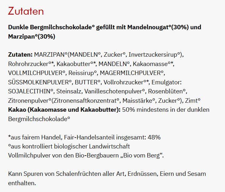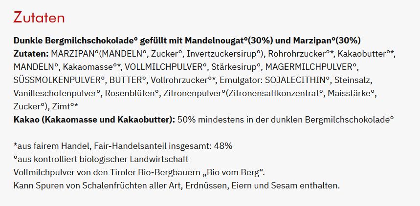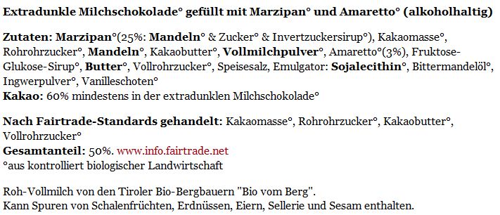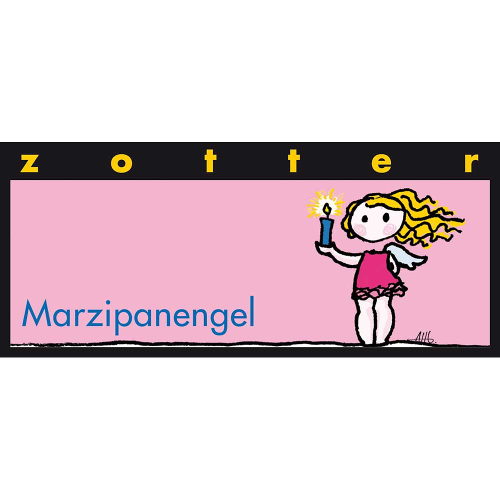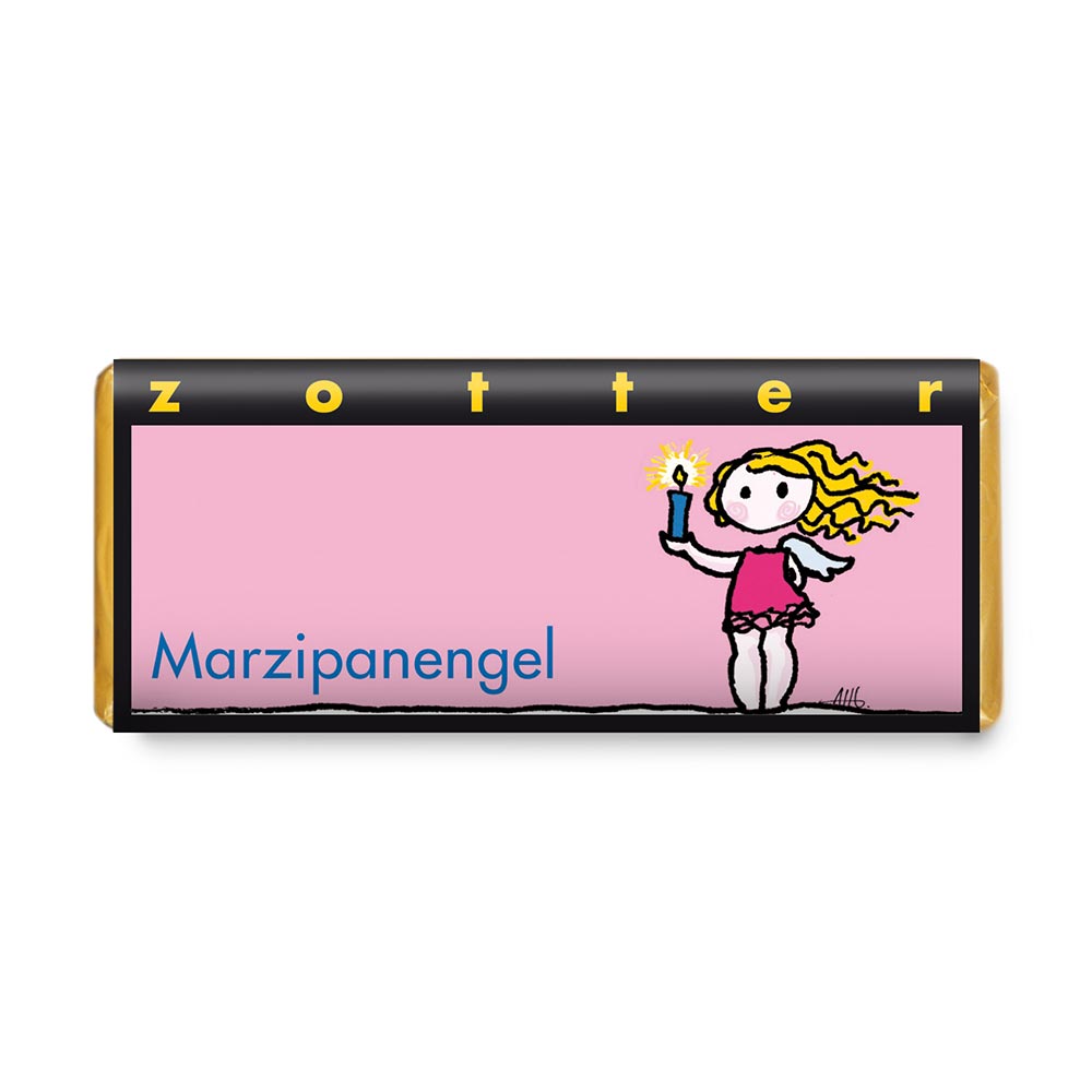 AT1-20-051 Zotter Schokolade "Marzipanengel" - Mandelnougat+ Marzipan, bio°, 70g, in 50% dunkler Bergmilchschokolade, Alkohol <2%