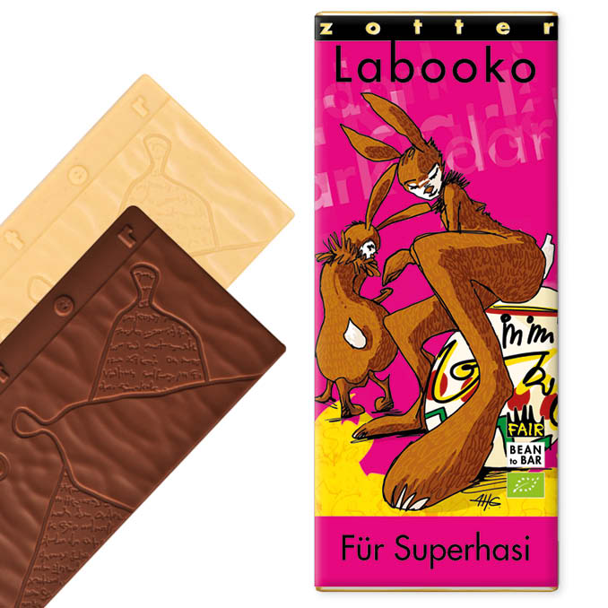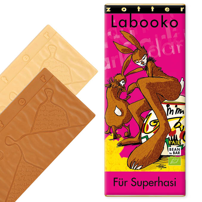 AT1-20-164 Zotter Labooko "Für Superhasi", Edelweiße Schokolade/ Karamell, bio°, 2x35g