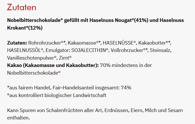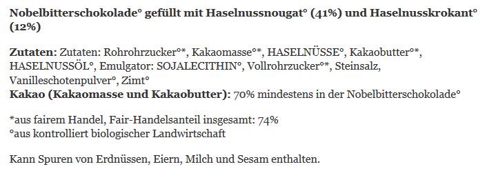 AT1-20-219 Zotter Schokolade Haselnussnougat Krokant, bio°, 70g, in 70% Nobelbitterschokolade, vegan