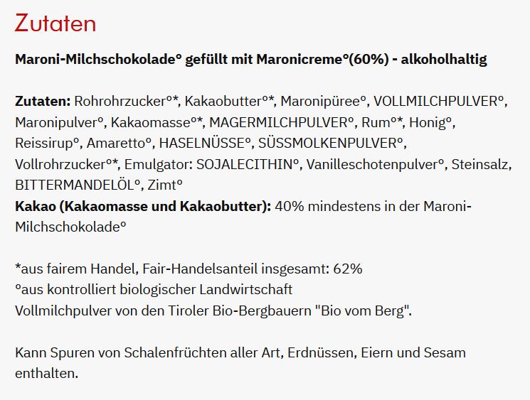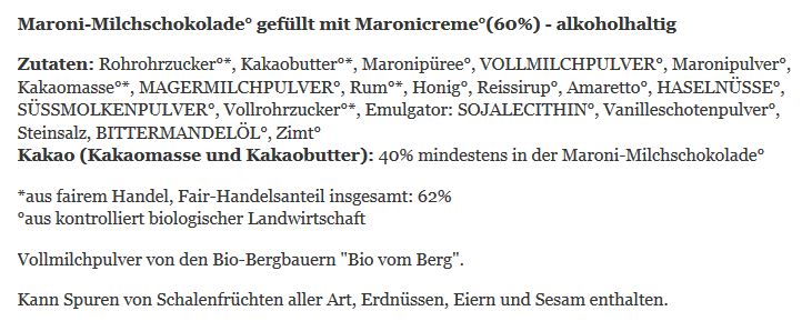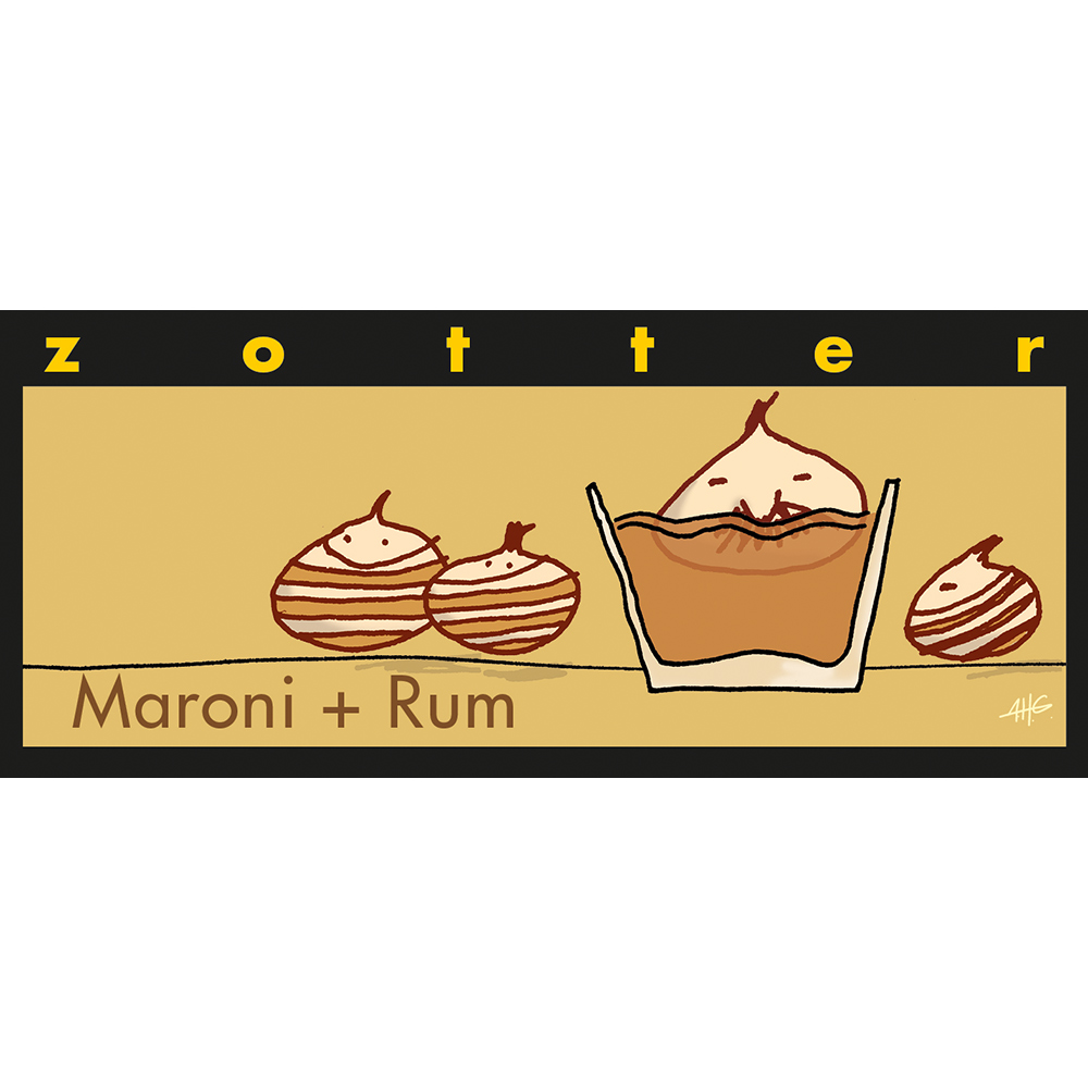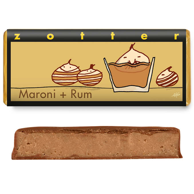 AT1-20-245 Zotter Schokolade Maroni + Rum, bio°, 70g, in Maroni-Milchschokolade 40, alkoholhaltig
