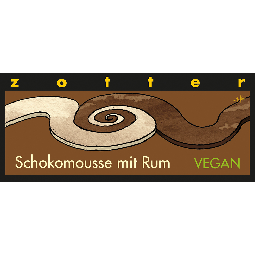 AT1-20-249 Zotter Schokolade Schokomousse mit Rum, bio°, 70g, in 70% Nobelbitterschokolade, alkoholhaltig, vegan