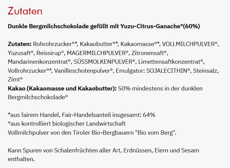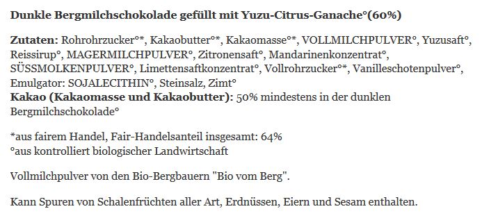 AT1-20-254 Zotter Schokolade Yuzu Citrus aus Japan , bio°, 70g, in 50% dunkler Bergmilchschokolade