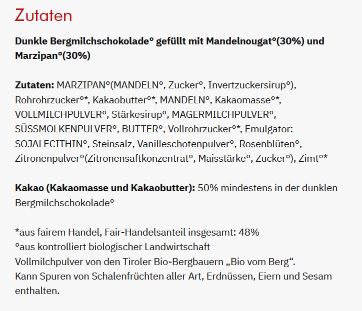 AT1-20-274 Zotter Schokolade Marzipan und Mandeln , bio°, 70g, in 50% dunkler Bergmilchschokolade