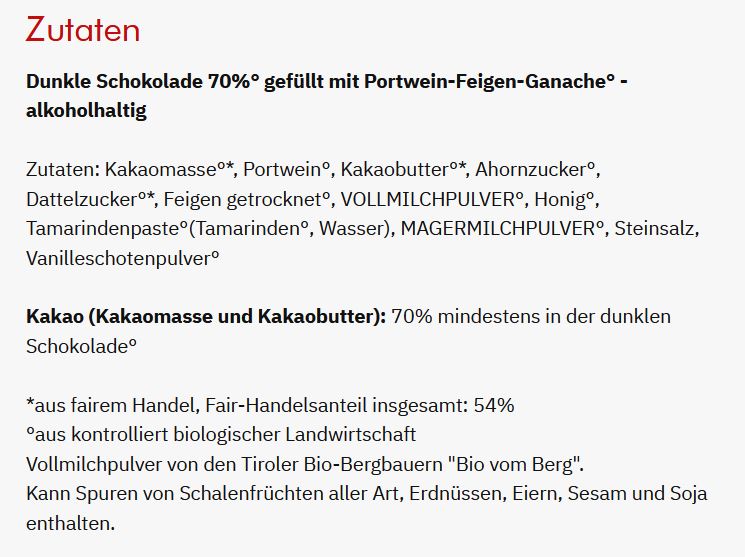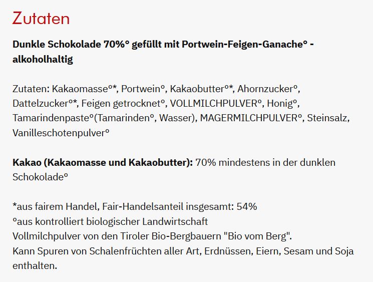 AT1-20-279 Zotter Schokolade Portwein + Feige, bio°, 70g, in dunkler Schokolade mit Ahornzucker, alkoholhaltig