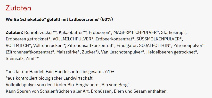 AT1-20-288 Zotter Schokolade Erdbeeren, bio°, 70g, in 30% weißer Schokolade