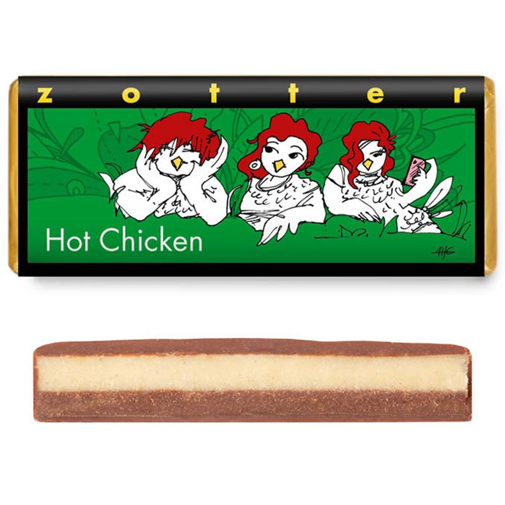 AT1-20-340 Zotter Schokolade "Hot Chicken" Eierlikör & Whiskey, bio°, 70g, in 50% dunkler Bergmilchschokolade Milchschokolade, Alkohol >2%