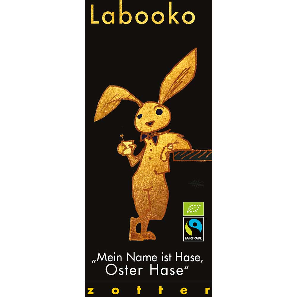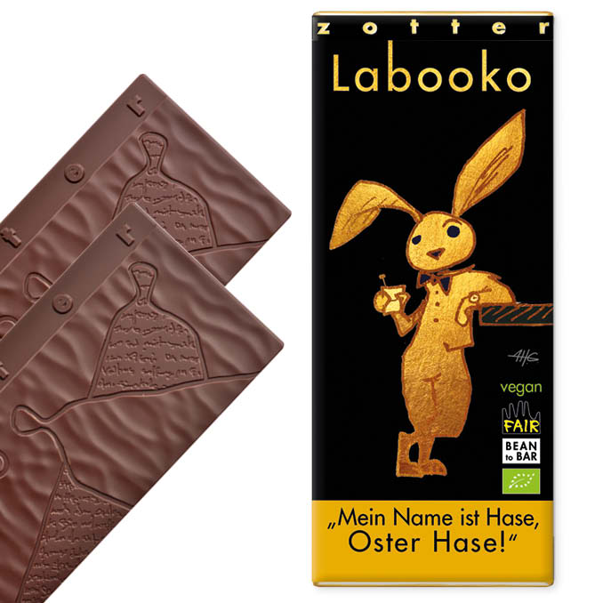 AT1-20-627 Zotter Labooko "Mein Name ist Hase, Oster Hase", Tansania 75/ Dominikanische Republik 62, bio°, 2x35g, vegan