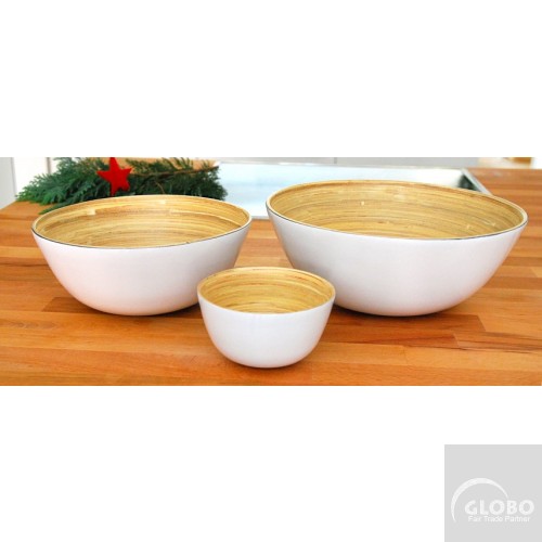 BAT-001 Schale aus Bambus, weiß, Ø 13,5 cm, H 7,5 cm