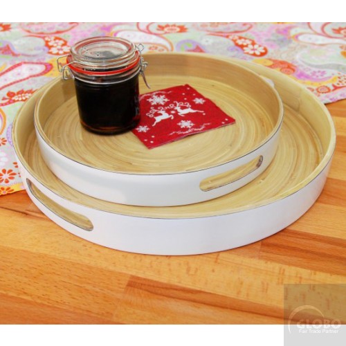 BAT-050 Tablett aus Bambus, weiß, rund, Ø 30 cm