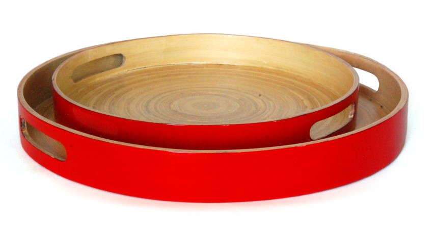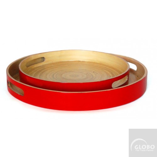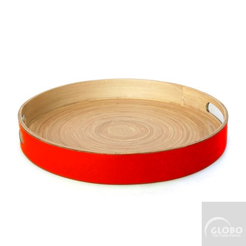 BAT-051 Tablett aus Bambus, rot, rund, Ø 30 cm
