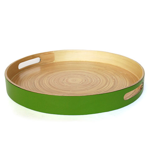 BAT-062 Tablett aus Bambus, grün, rund, Ø 37 cm