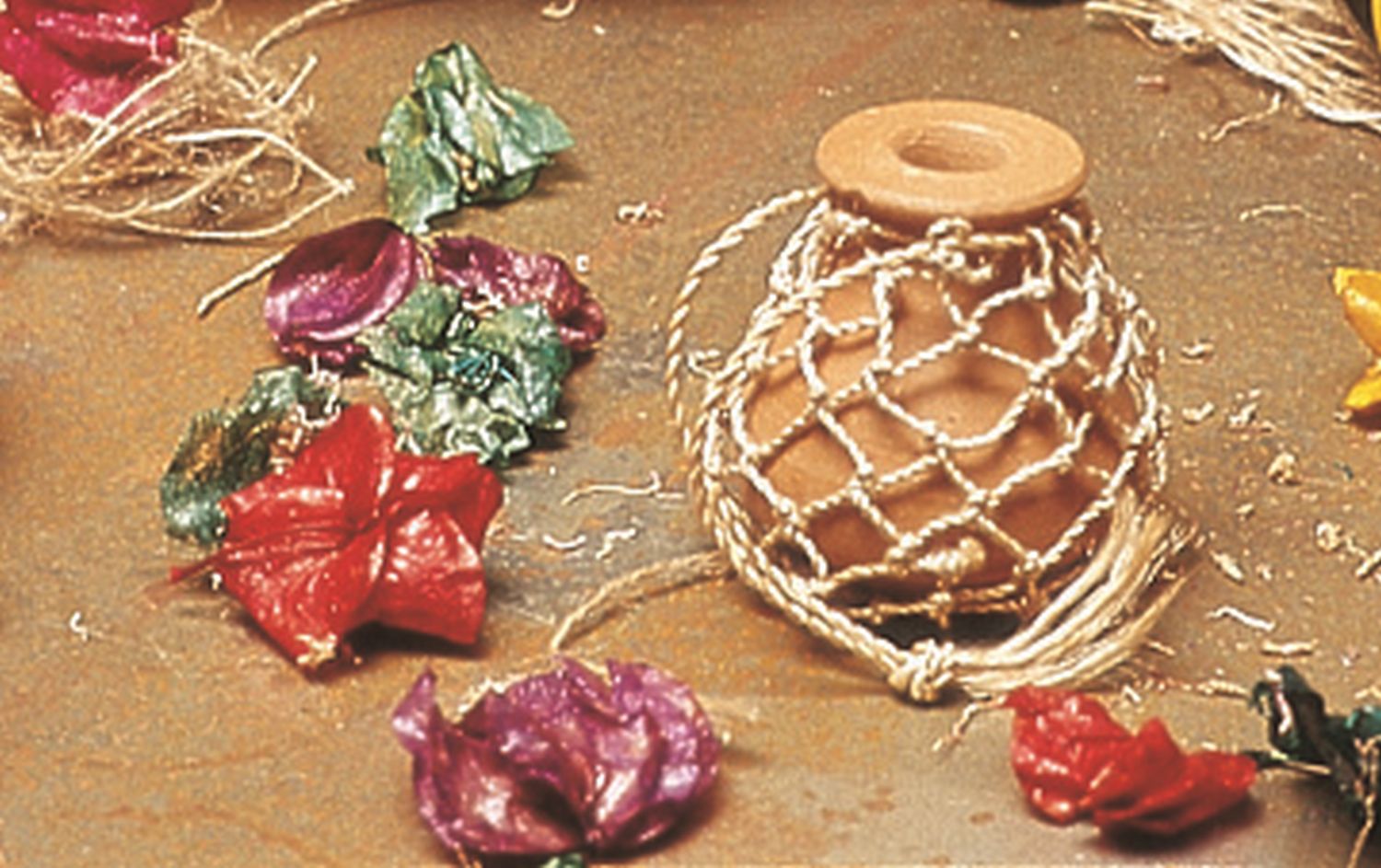 BD0-21-015 Duftölverdunster, Tonflasche im Jutenetz, 6 cm
