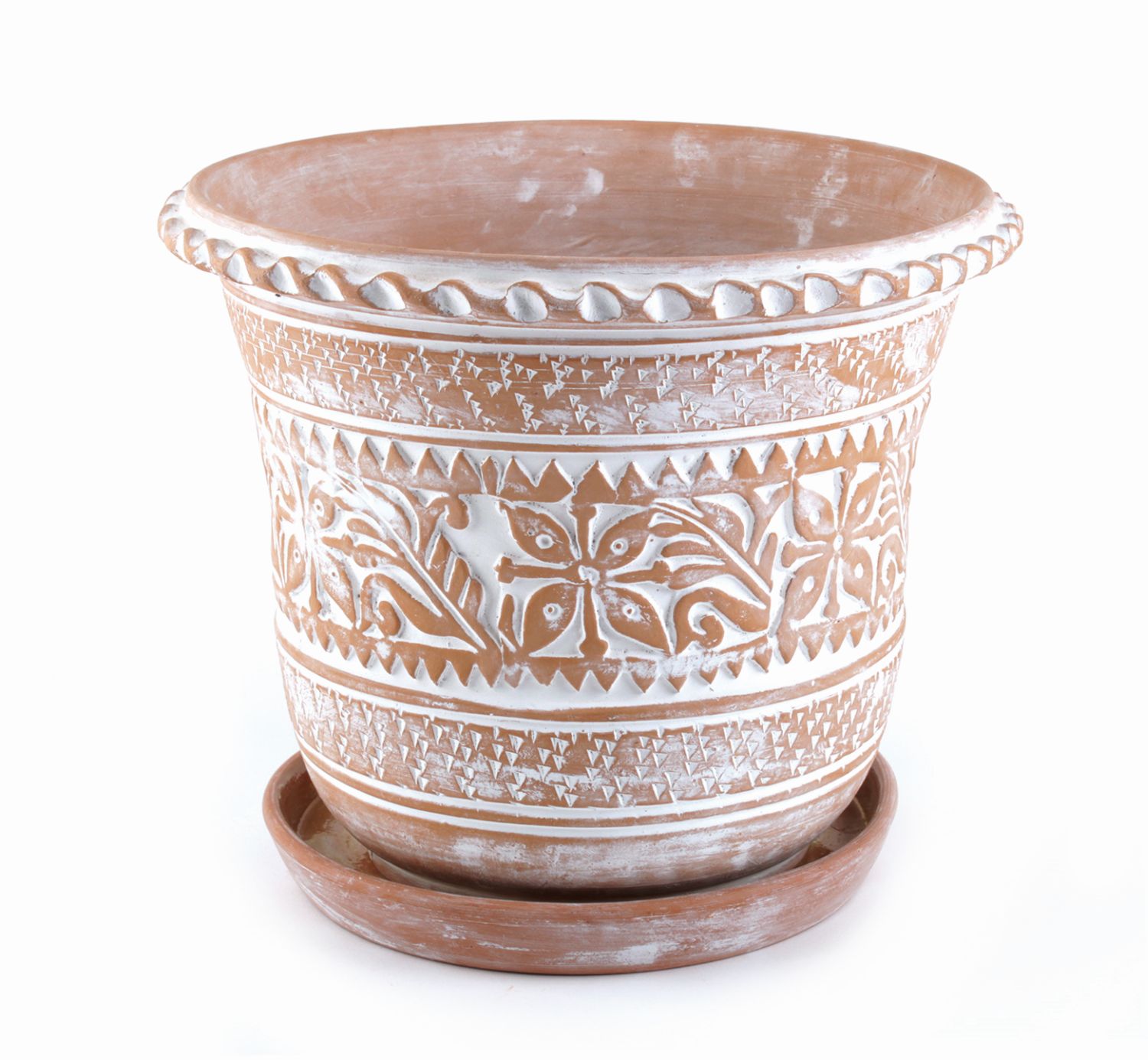 mit Abflussloch und glasiertem Untersetzer, Terracotta, whitewash, 29 x 24 cm