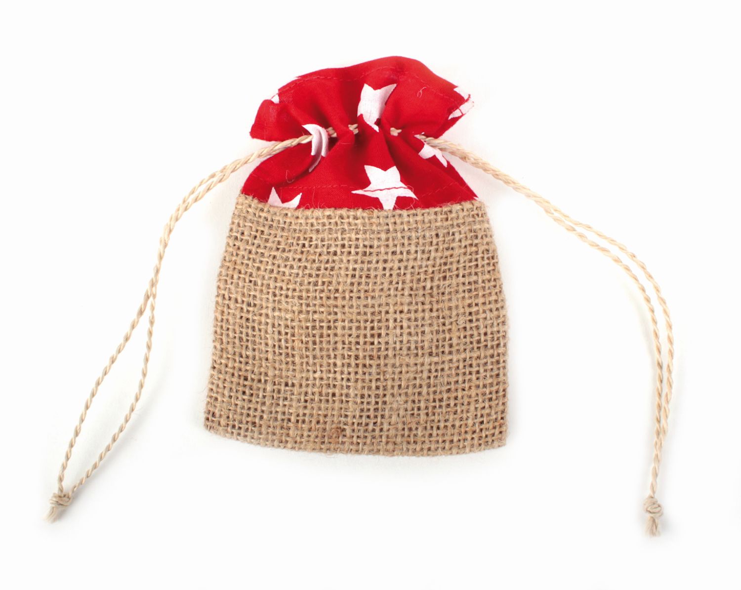 Jute und Baumwolle, rot mit weißen Sternen, 12 x 9 cm