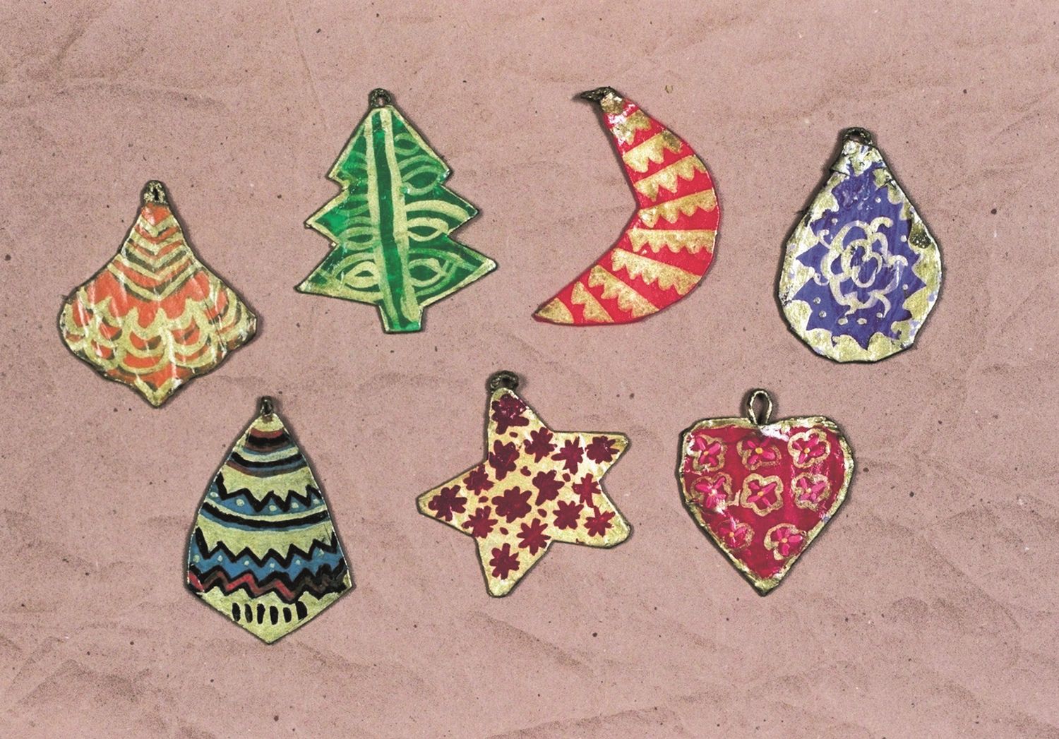 BD0-80-500 Baumschmuck aus Pappe, 7 Weihnachtsmotive im Set