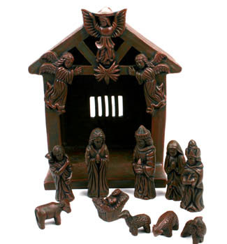 11-teilig, Ton, braun, H 10 cm, Krippenhaus 21 x 14 x 24 cm