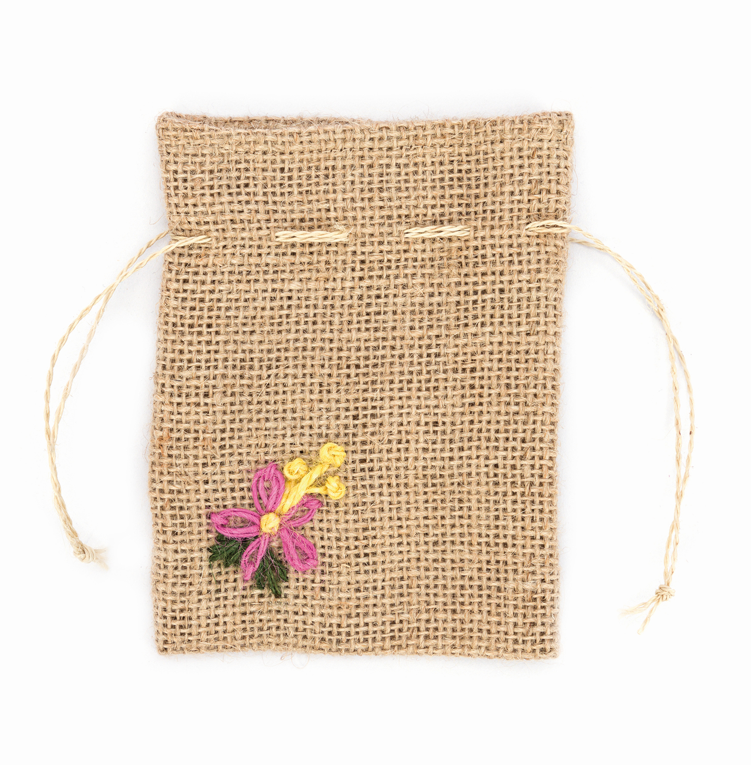 100% Jute, handgewebt und -bestickt, 9 x 12 cm