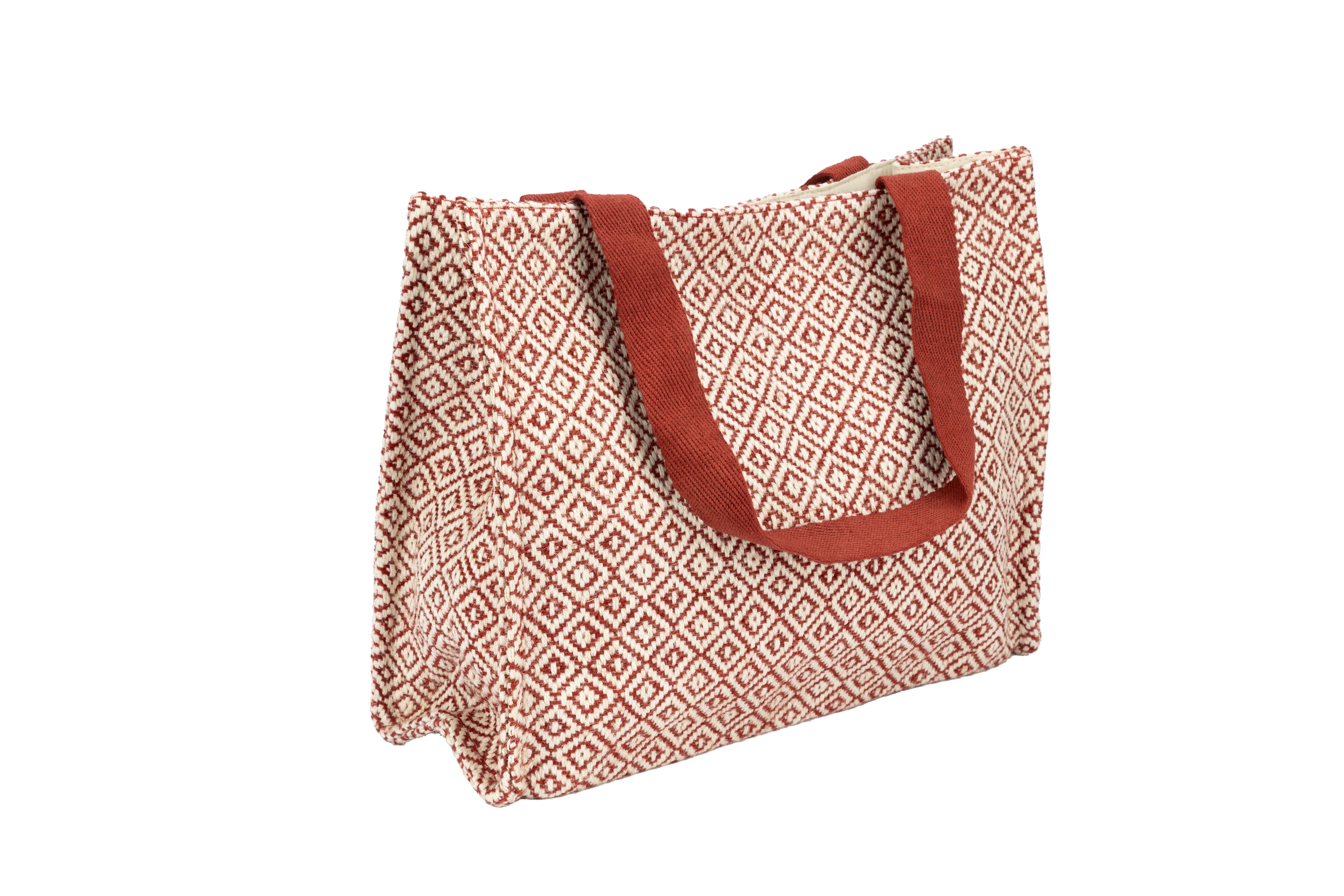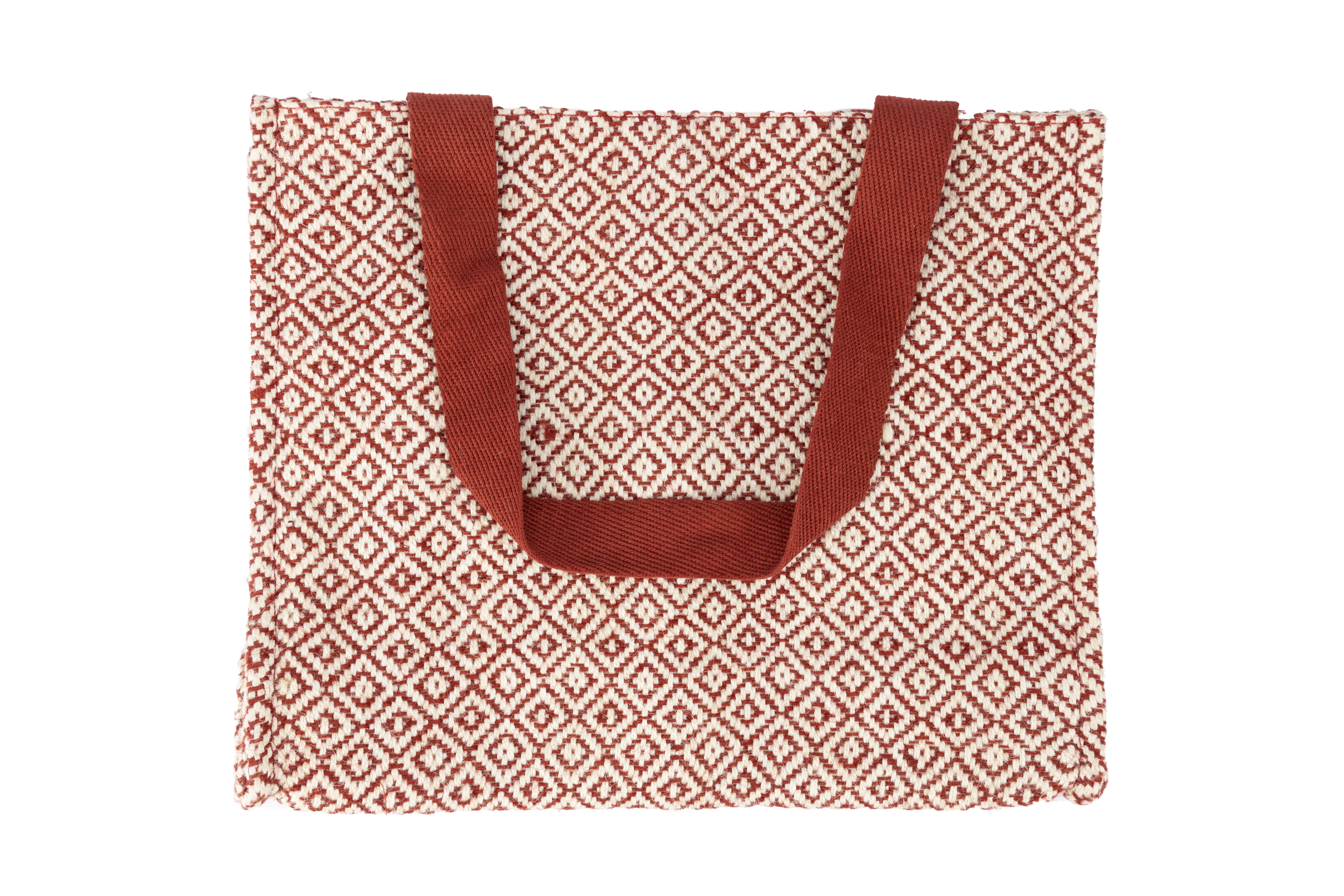 Handgewebte Jute, rot-weiß gemustert, 32 x 40 x 16 cm
