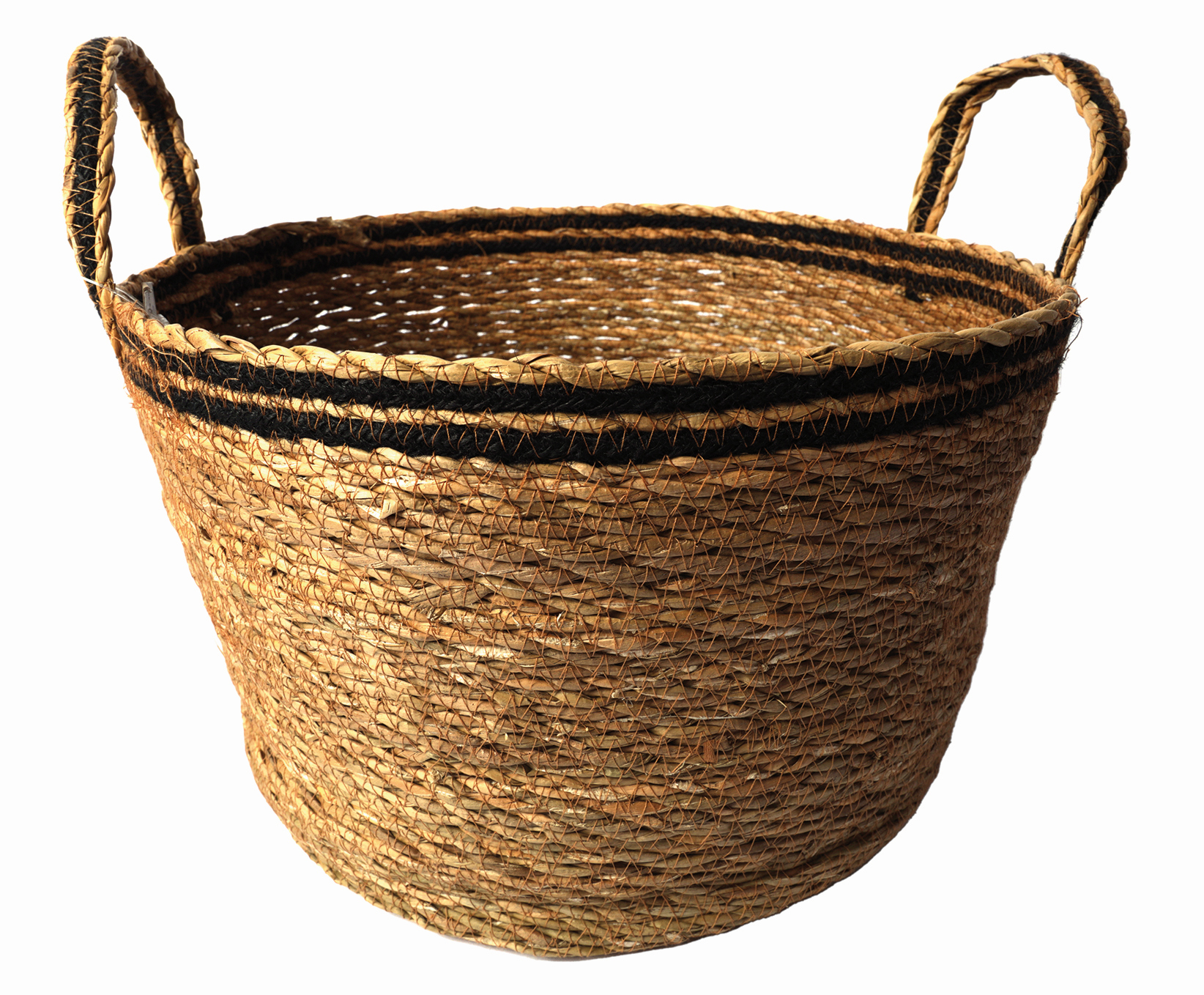 Elefantengras, Jute, mit Griffen, natur/schwarz, H 21 cm, Ø 32 cm