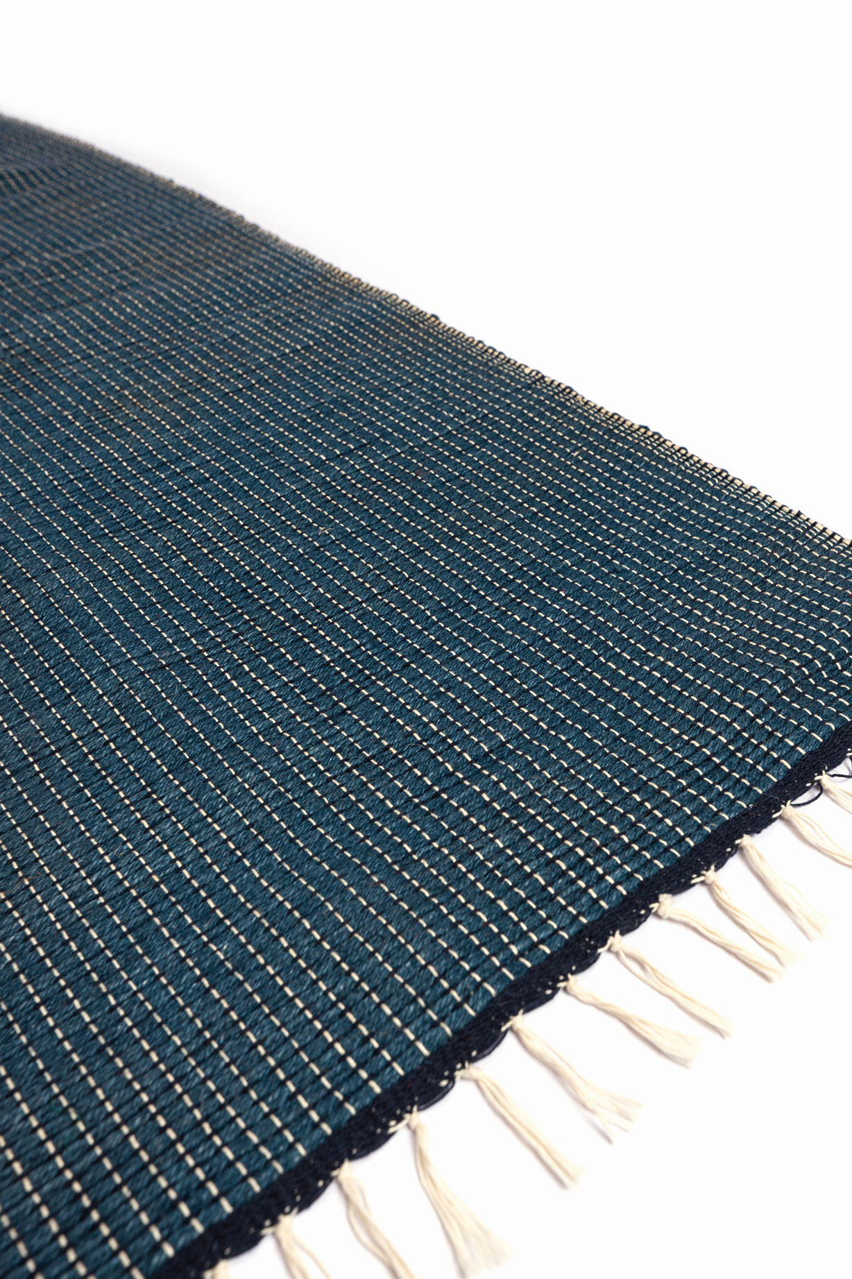 90% Jute, 10% Baumwolle, handgewebt, blau/beige, 70 x 130 cm