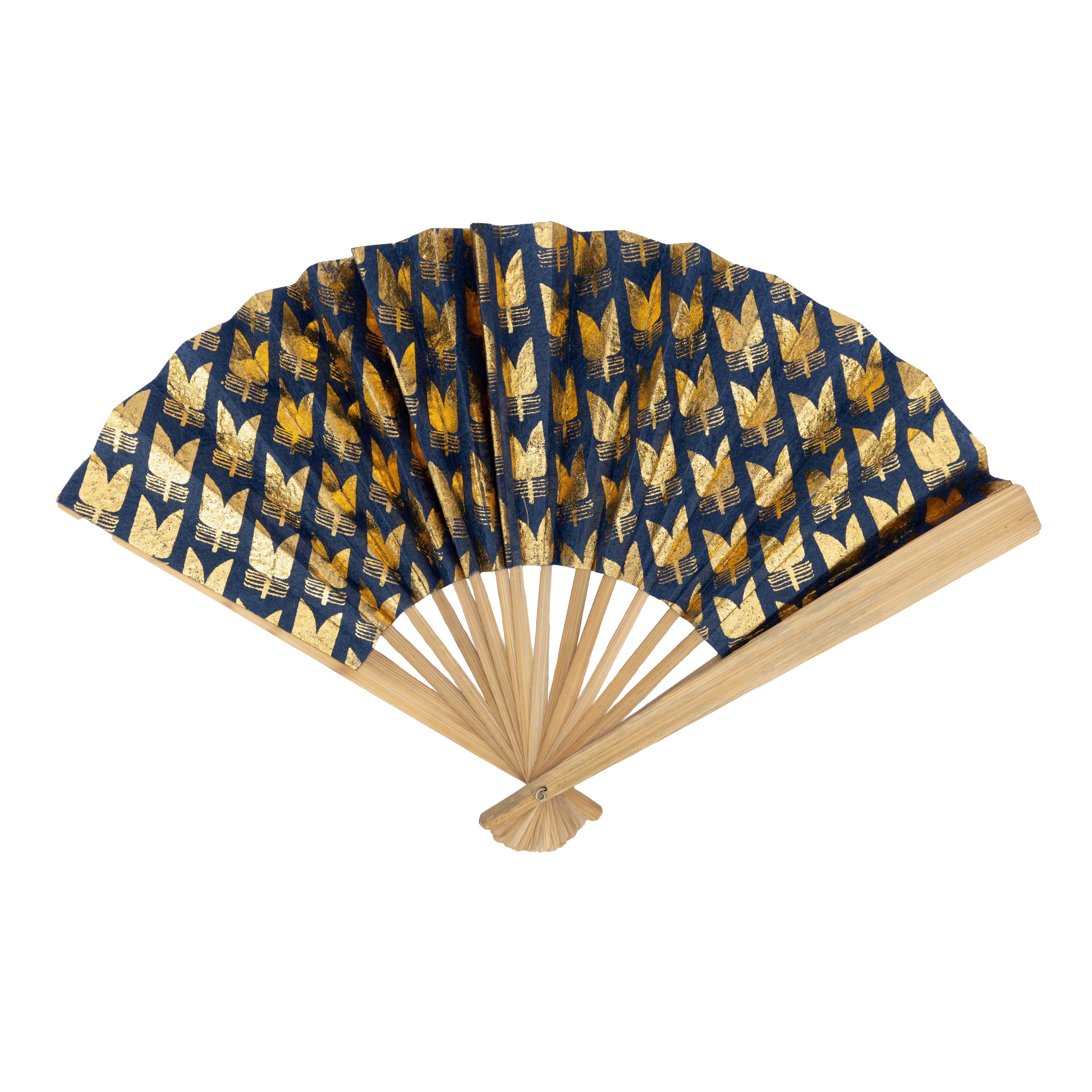 Bambus und handgeschöpftes Seidenpapier, blau/gold, L 23 cm