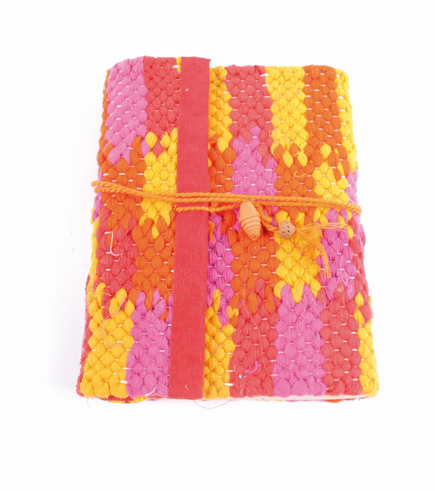 Infozeilehandgeschöpftes Papier (Wasserhyazinthe), 50 Blatt Umschlag aus recycelten Sari-Stoffen, rot/orange, 11 x 15 cm