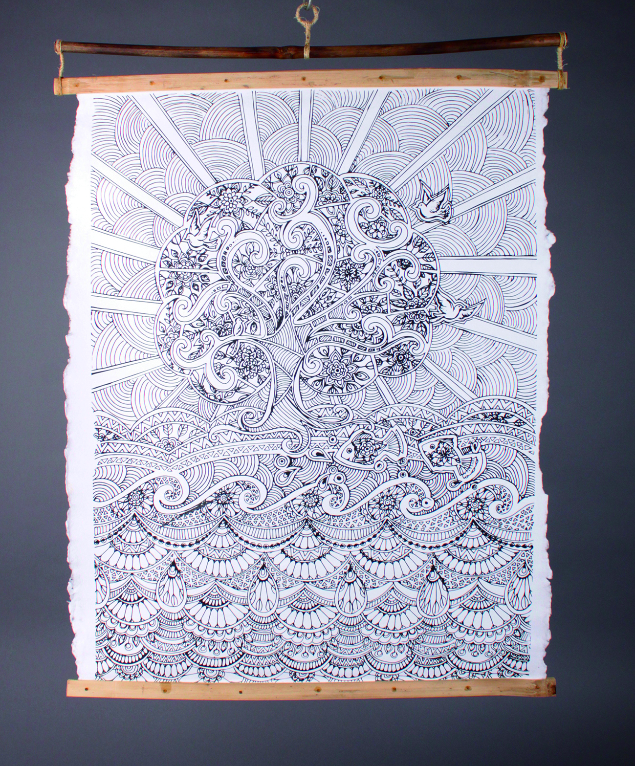 handgeschöpftes Papier und Bambus, 70 x 55 cm