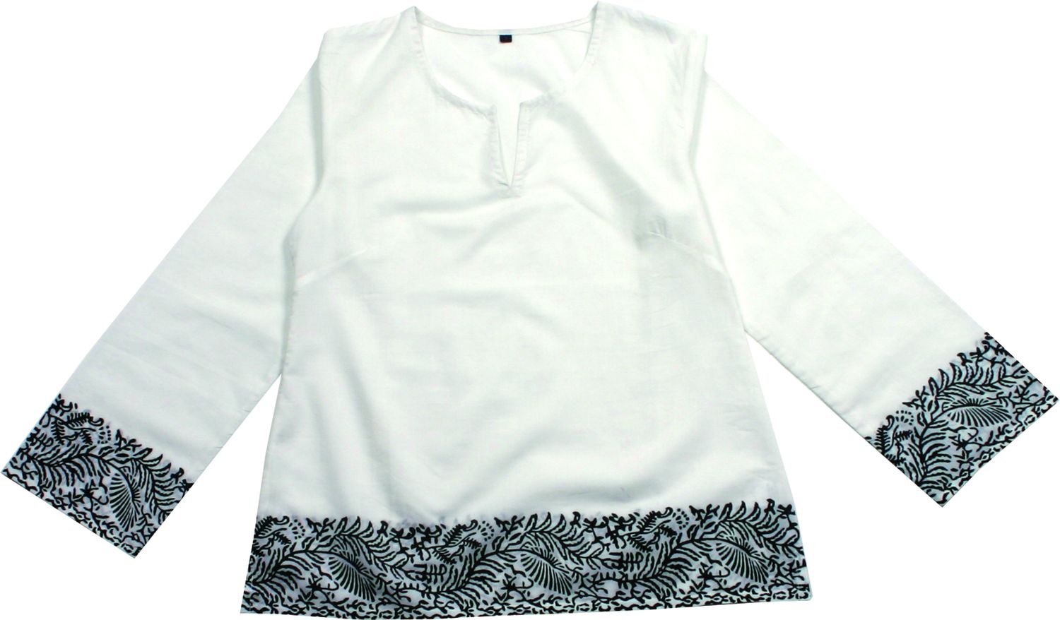 Langarm, weiß mit schwarzem Handdruck 100% Baumwolle