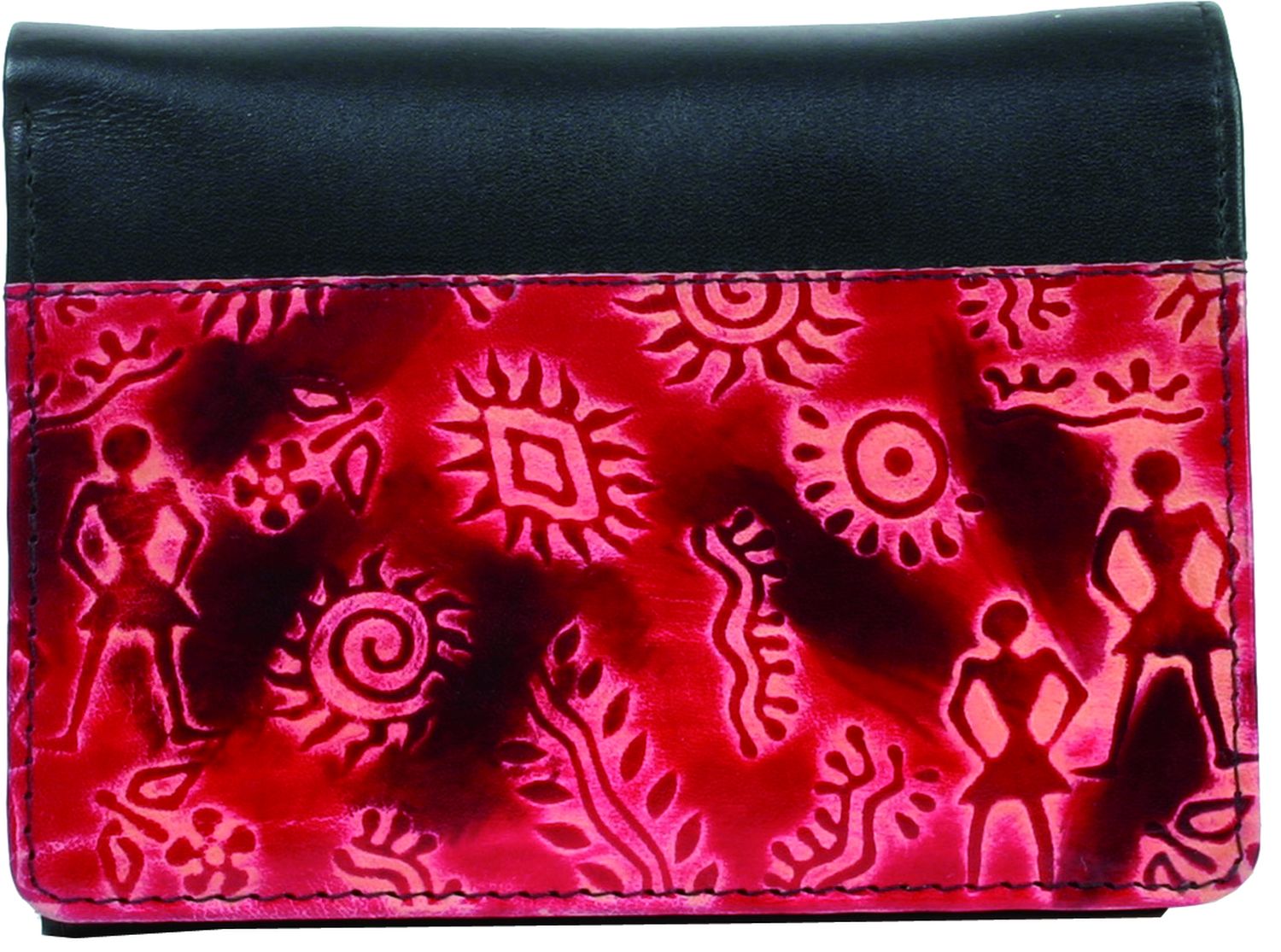 Schafsleder, Warli-Design, rot/schwarz, 13 x 3 x 9,5 cm