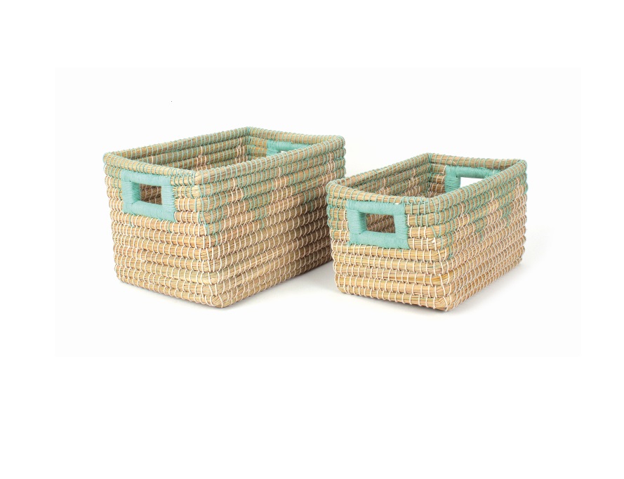 InfozeileKaisa-Gras mit Baumwollumwicklung, türkis/weiß, 35 x 25 x 22 cm und 30 x 20 x 16 cm