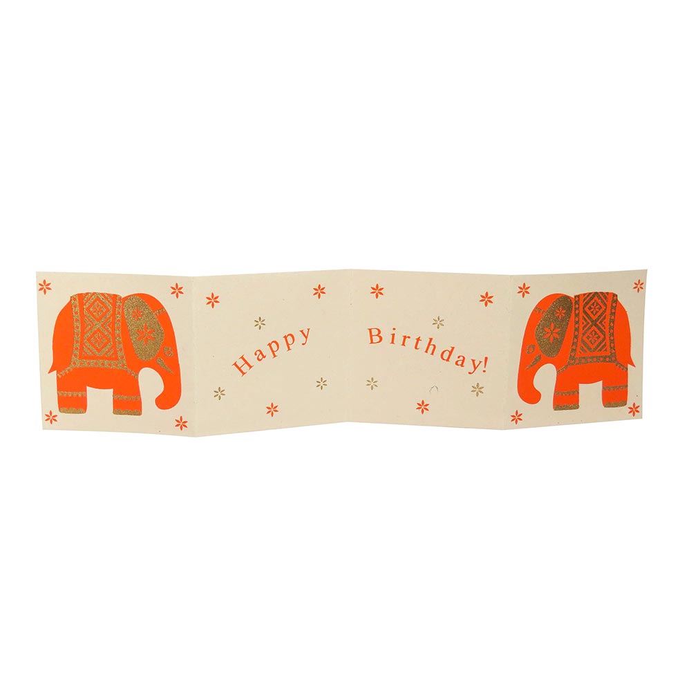 BD7-95-012-07 Faltkarte "Happy Birthday" Elefant, orange, mit Umschlag, handgeschöpftes Papier (recycelte Jute), 11,5x11,5