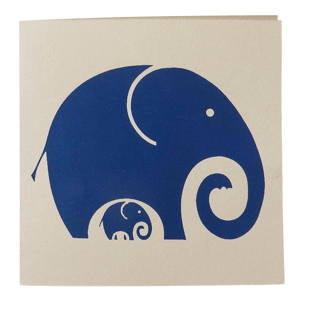 BD7-95-017 Grußkarte "Elefant mit Baby", blau, mit Umschlag, handgeschöpftes Papier (recycelte Jute), 14x14