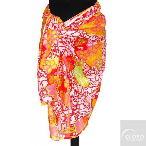 BEC-031 Multifunktionsschal 100% Baumwolle, rot/orange/pink/grün