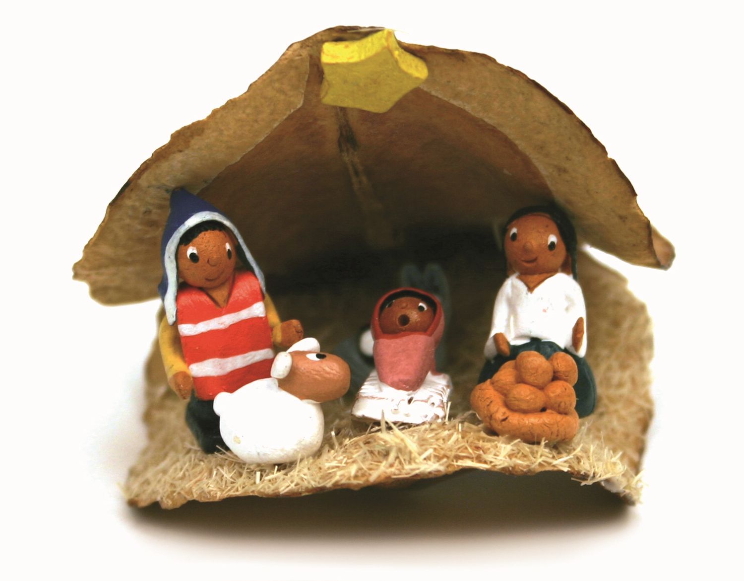 BO2-81-001 Krippe einteilig, Keramik in Jacaranda-Schale