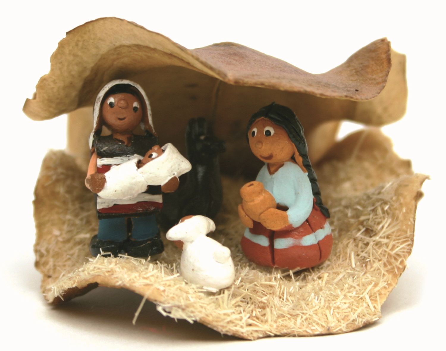 BO2-81-002 Krippe einteilig, Keramik in Jacaranda-Schale