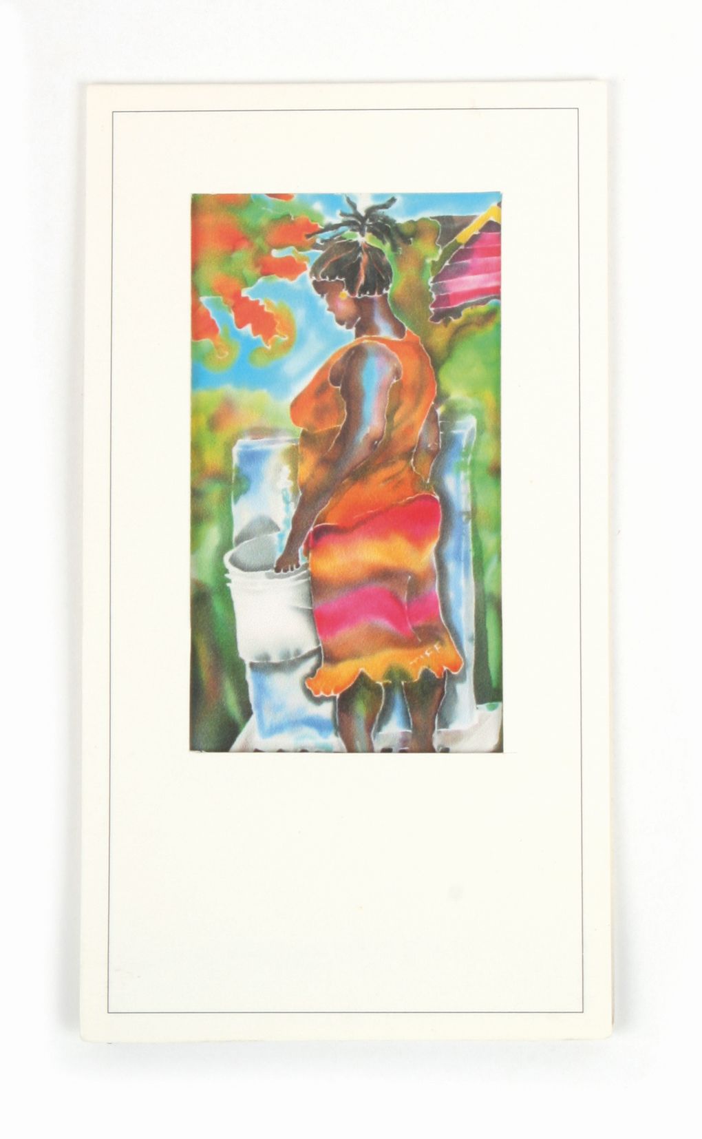 Infozeiletraditionelle Batiktechnik, Kunstdruck in Passepartout, mit Magnet, 5,5 cm x 10 cm