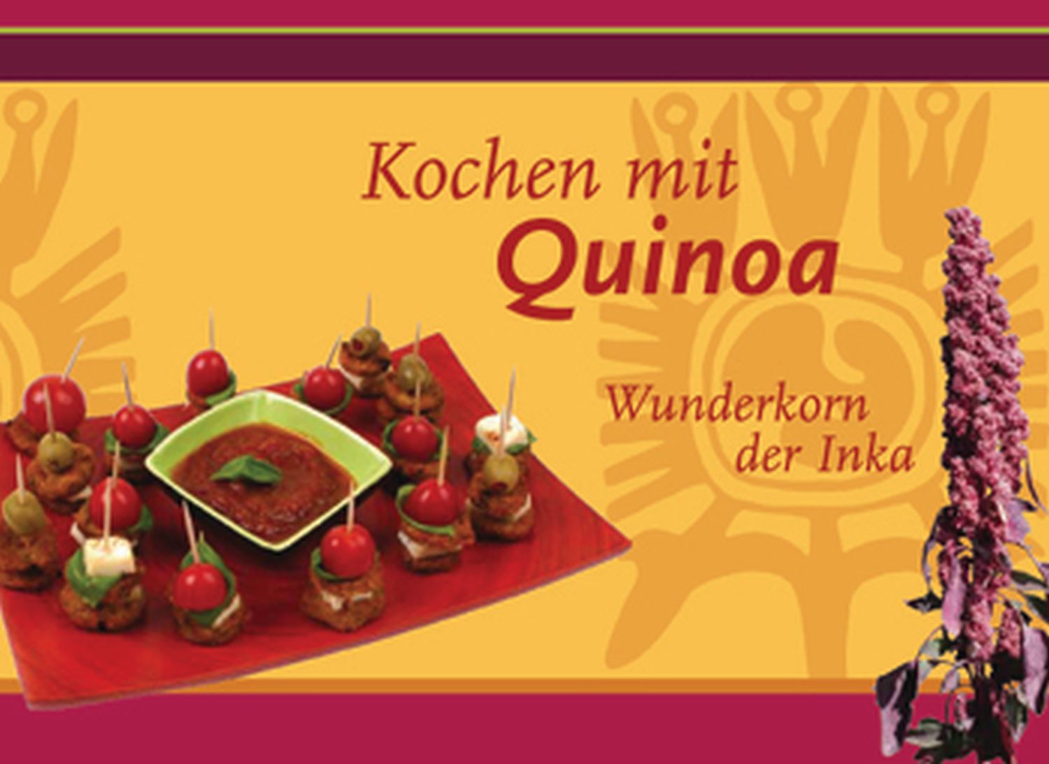 Infozeile"Kochen mit Quinoa", 45 Seiten. Es erwarten Sie über 40 Rezepte mit vielen Tipps und Variationen rund um das Inka-Wunderkorn!