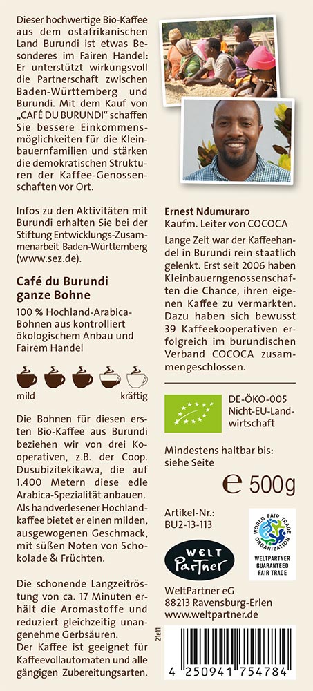 Informationenmild und ausgewogen, Arabica-Hochlandkaffee - Partnerschaft Baden-Württemberg und Burundi
