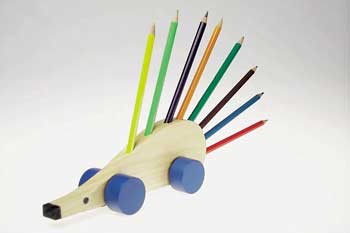 CH1-20-020 Stifthalter "Igel auf Rädern", Pinien-Holz, 21 cm
