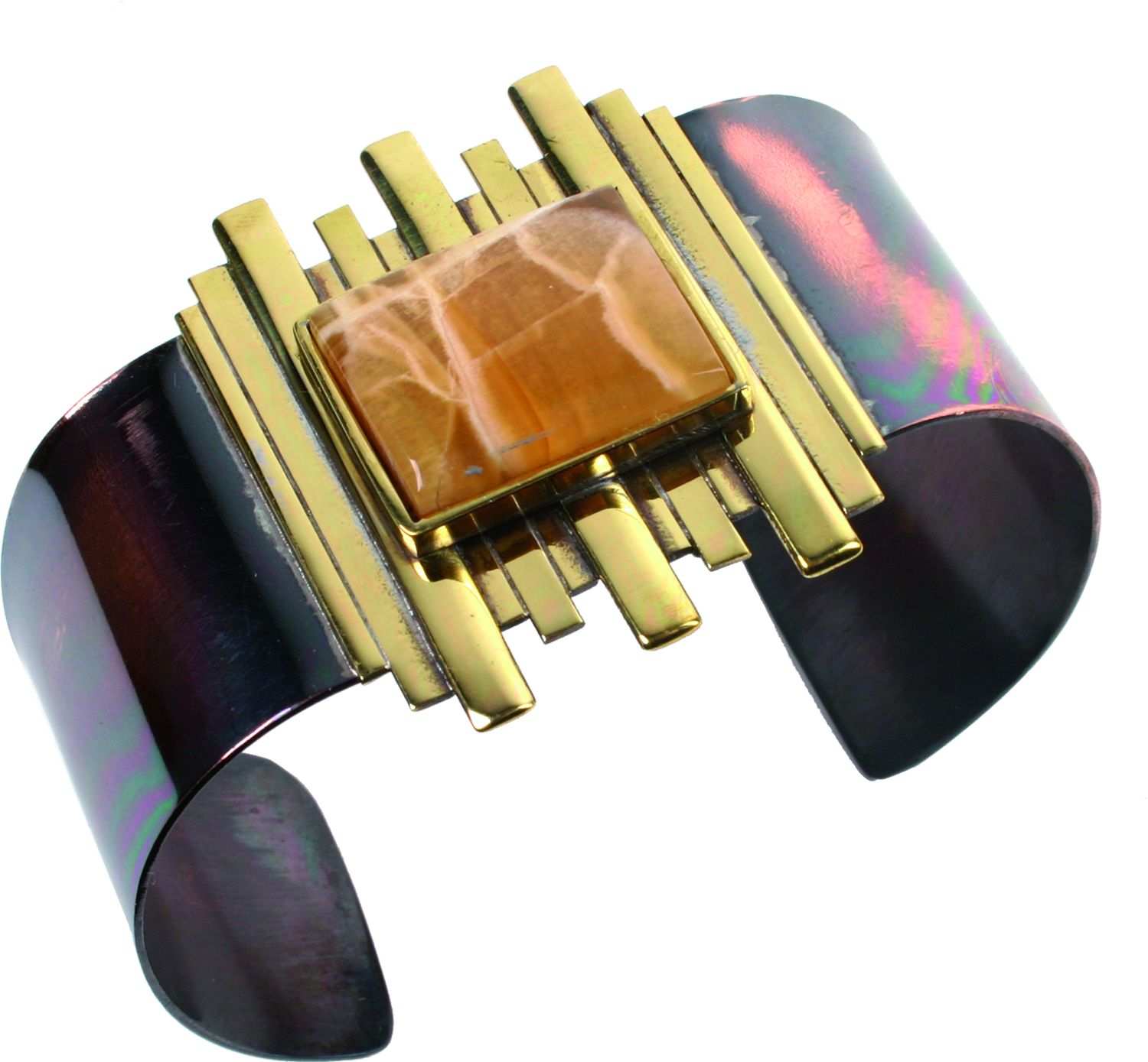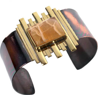Kupfer, Bronze und Onyx, B 4,5 cm