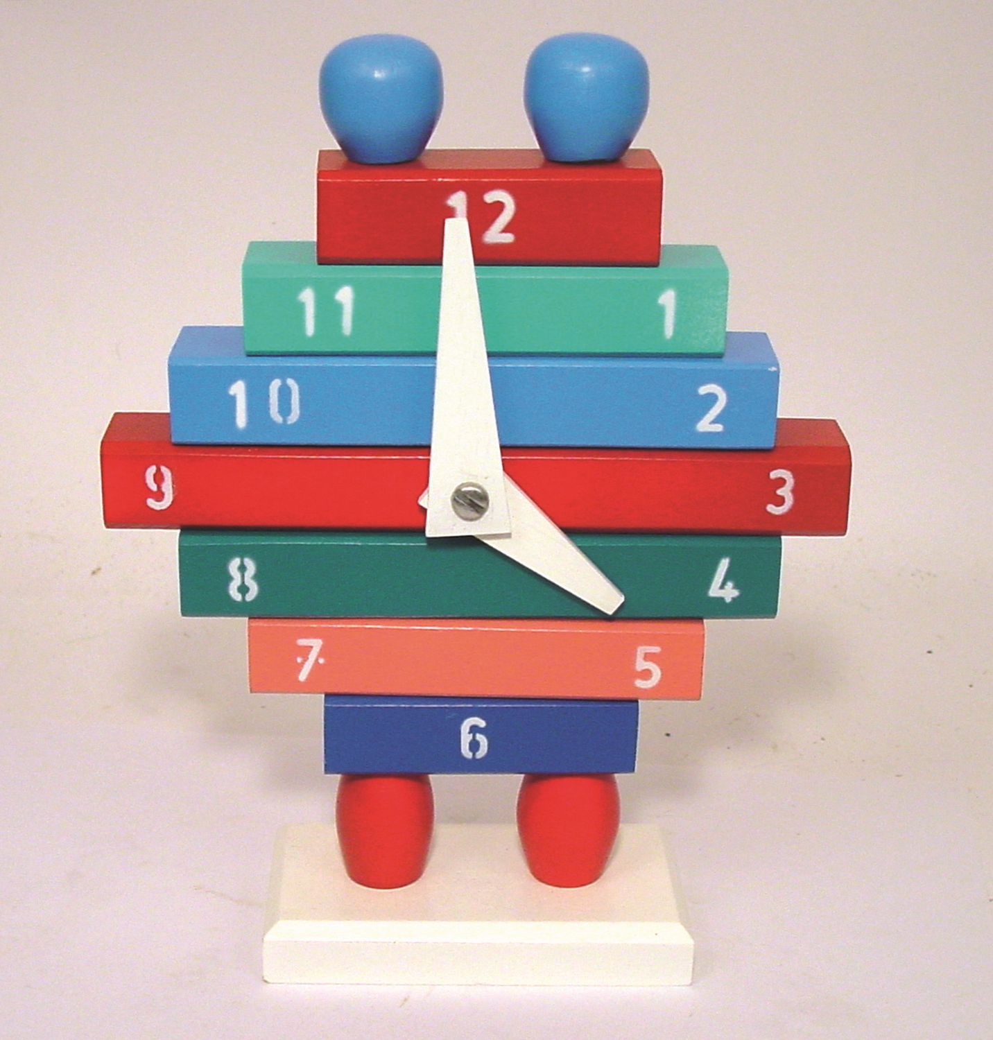 CH1-90-035 Kinderlernuhr aus bunten Holzbausteinen
