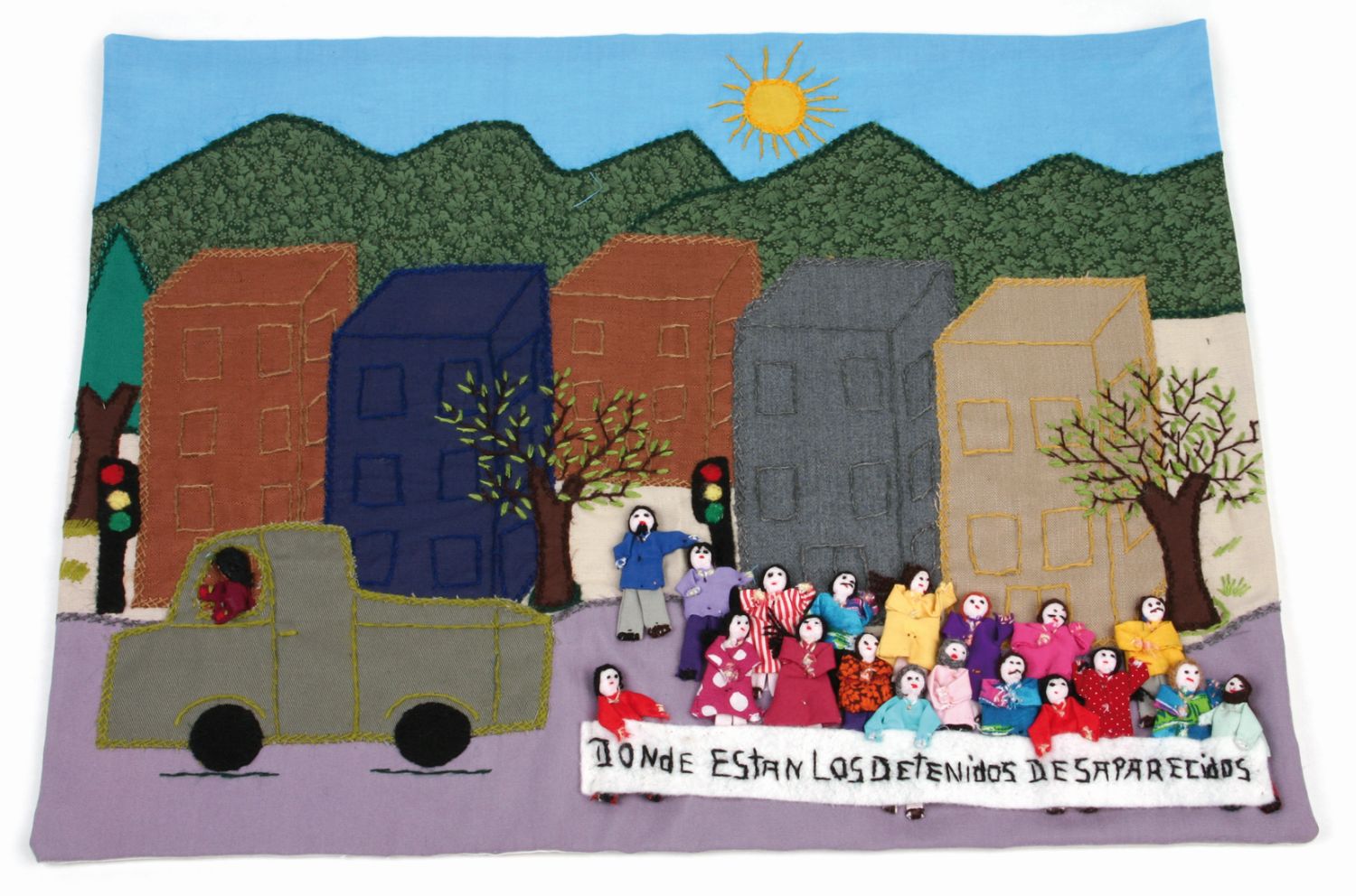 CH3-80-001 Arpillera "Wo sind die Verschwundenen"