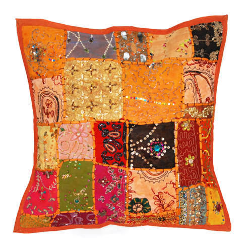 CUS-102 Kissenbezug, Patchwork mit Glasperlen, orange