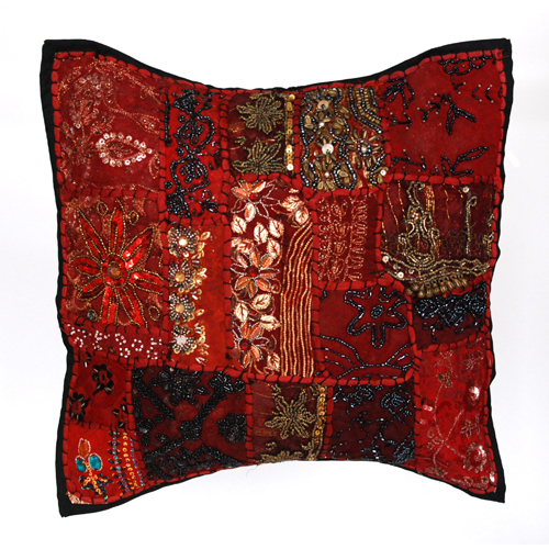 CUS-103 Kissenbezug, Patchwork mit Glasperlen, rot