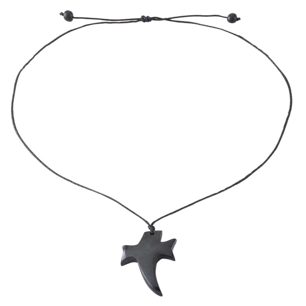 EC1-33-018 Halskette mit Kreuz aus Tagua (Steinnuss), schwarz, verstellbares Baumwollband L max 38