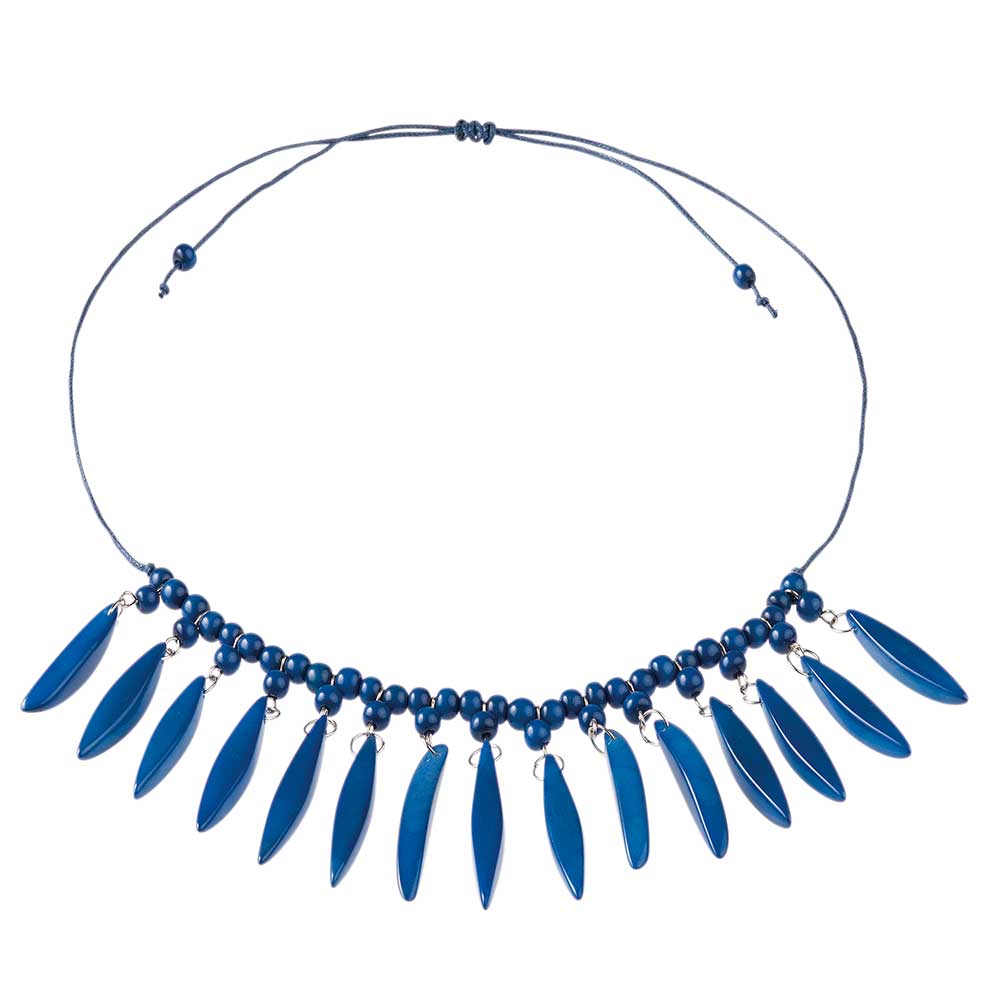 EC1-33-021-04 Halskette aus Tagua-Steinen (Steinnuss), längliche und runde Form, indigoblau, L25-40