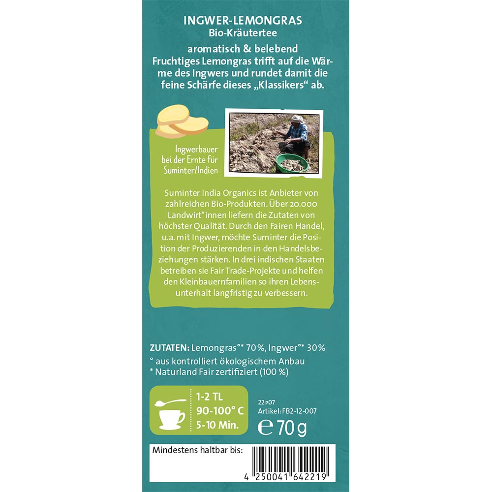 fb2-12-007 - Ingwer-Lemongras, Kräutertee, bio°, 70g Zutaten