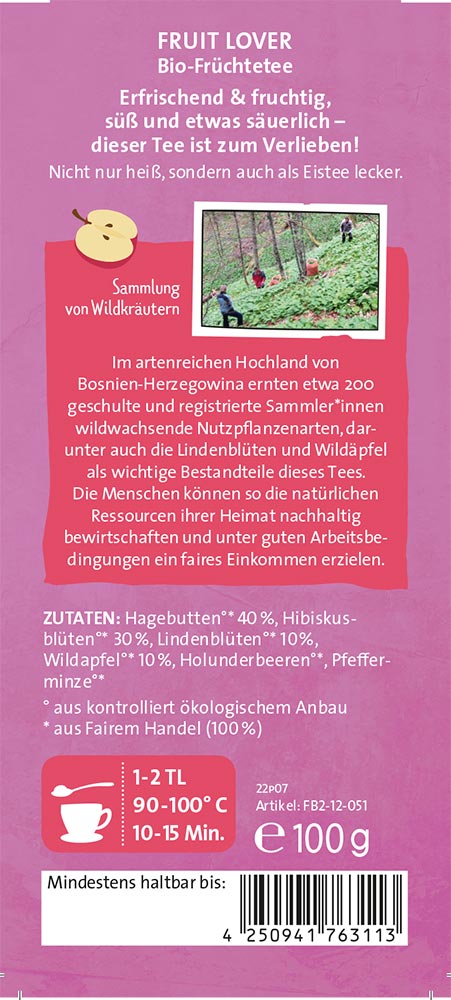 FB2-12-051 Fruit Lover, Früchtetee, bio°, 100g