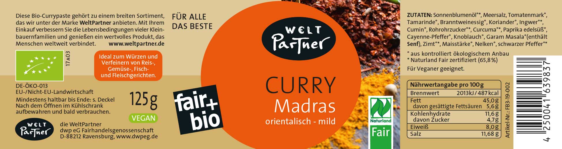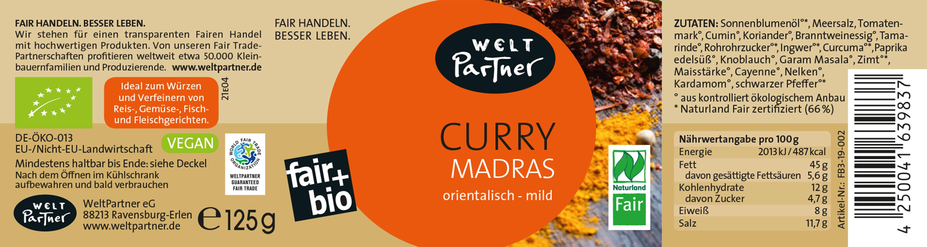 FB3-19-002 Currypaste Madras, bio°, Naturland Fair, 125g, vegan