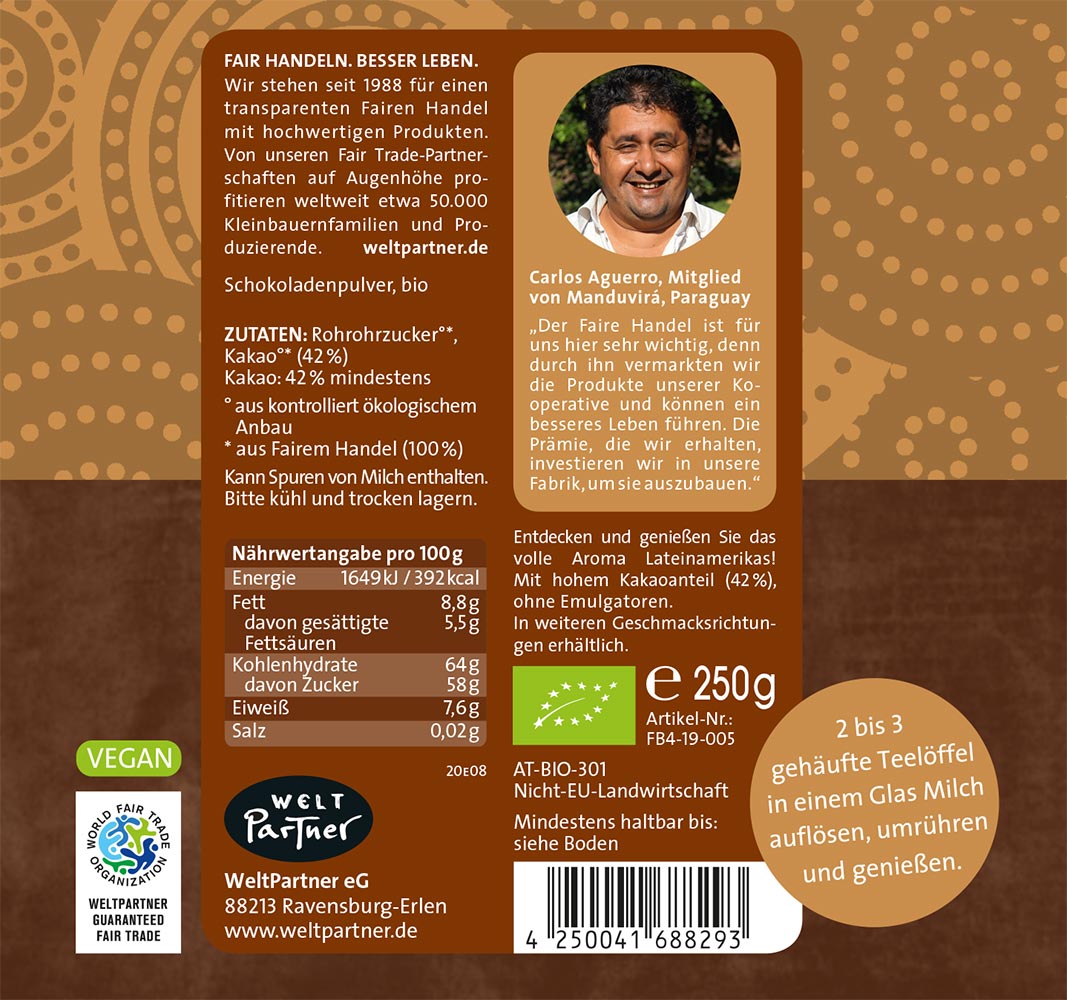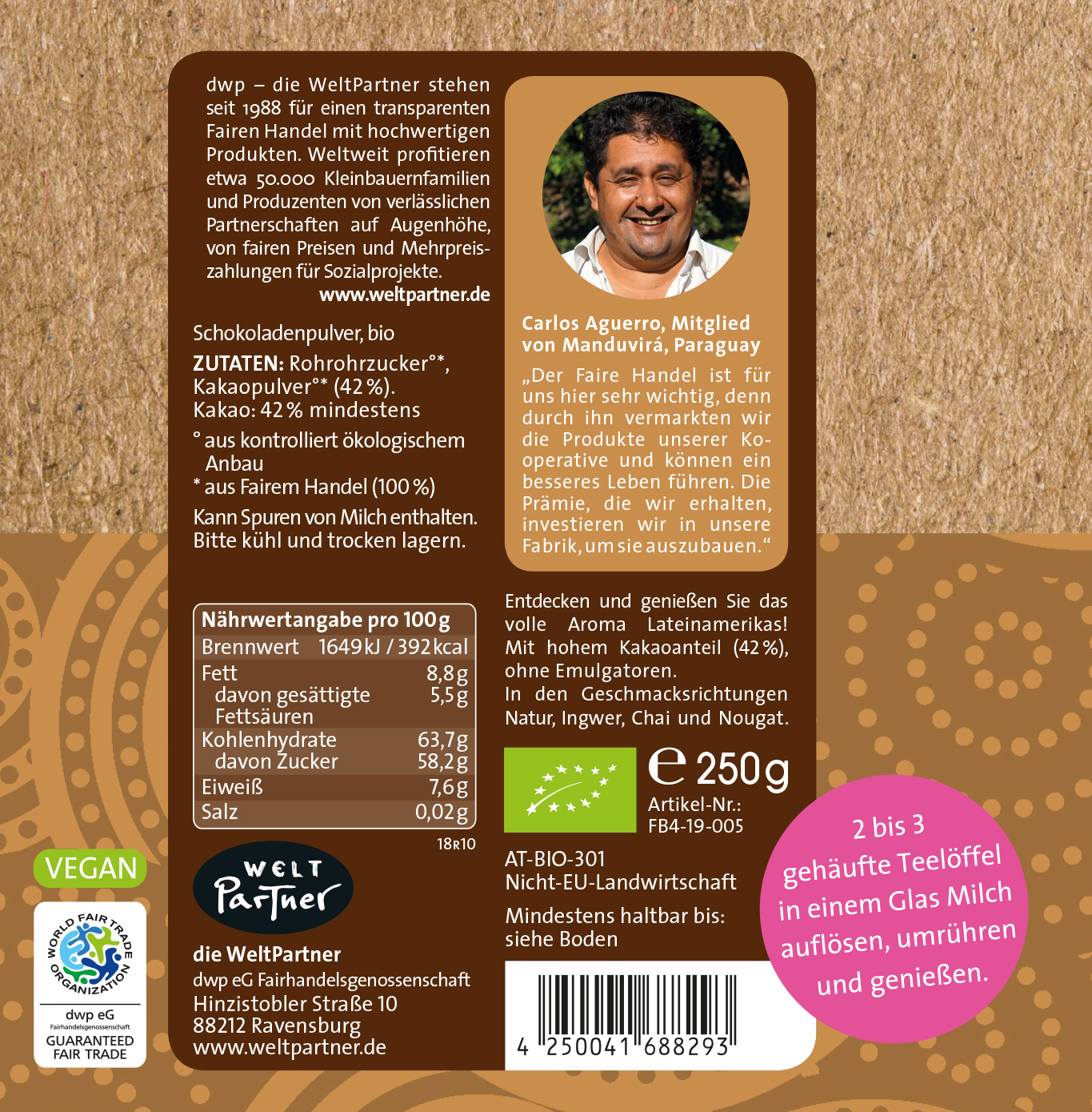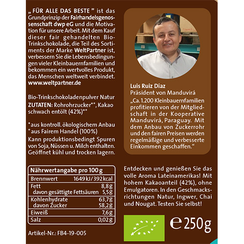 FB4-19-005 Kakao Natur, Trinkschokoladenpulver, bio°, 250g, vegan